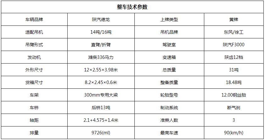 陜汽德龍三一12噸隨車吊配置參數(shù)