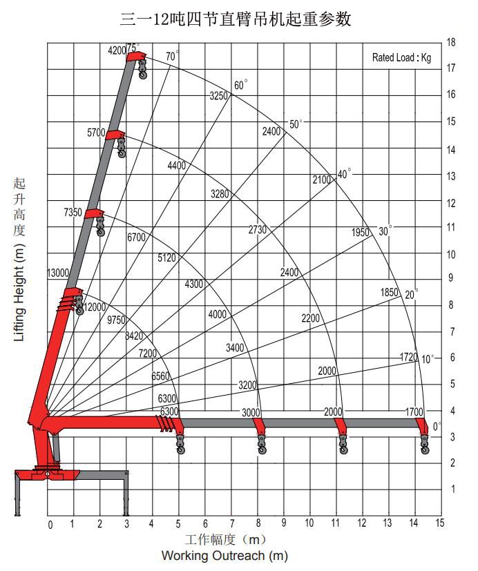 三一SPS30000參數(shù):三一吊機不伸臂長5.4米,最大可起吊12噸,全伸臂長14.8米,舉升高度16.8米,水平方向最遠可吊1.7噸,前液壓支腿全伸跨距為6米;三一12噸四節(jié)吊臂液壓系統(tǒng)最大流量為70L/min,液壓油箱容積200L,系統(tǒng)額定壓力26/28Mpa。
