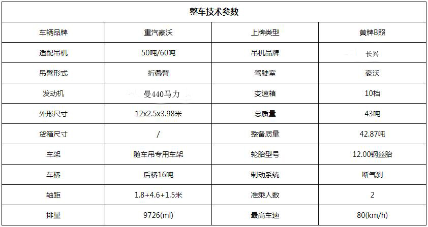 重汽豪沃55噸折臂隨車吊配置參數(shù)